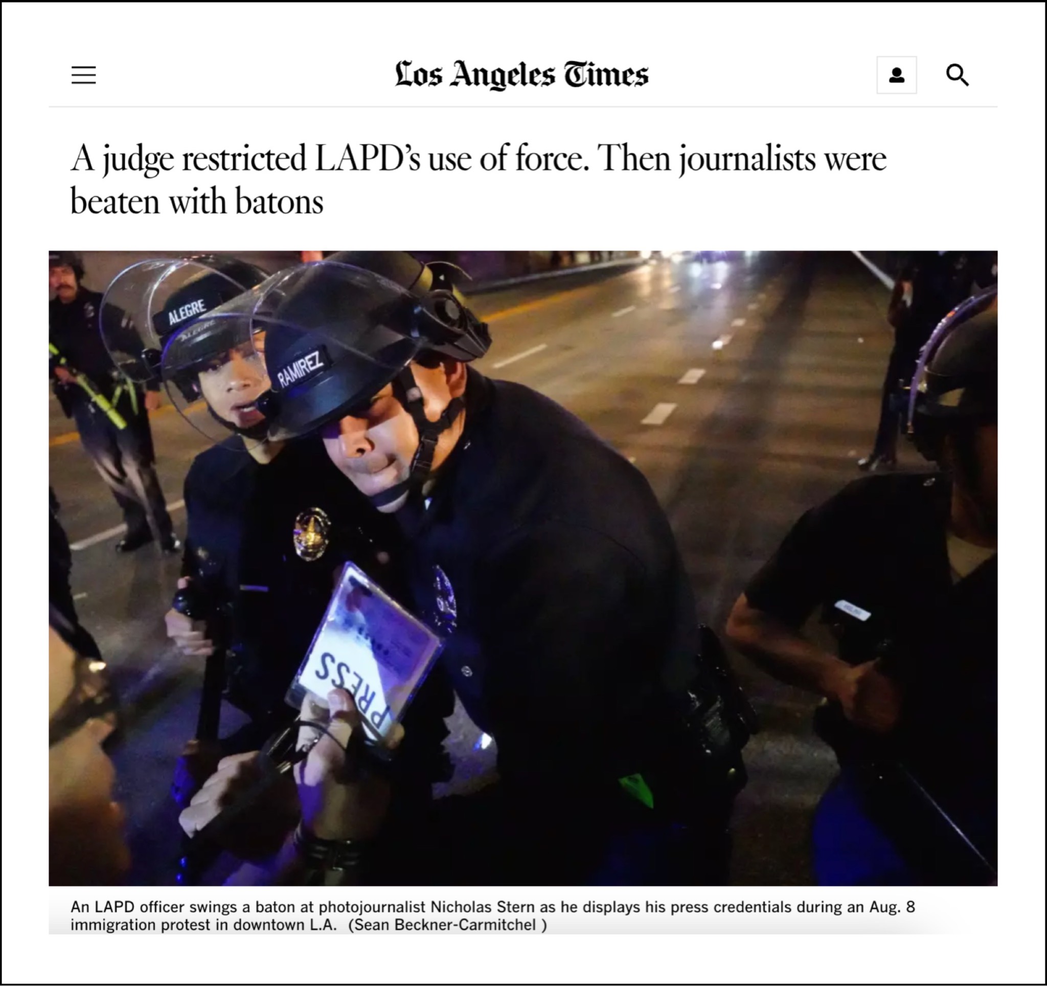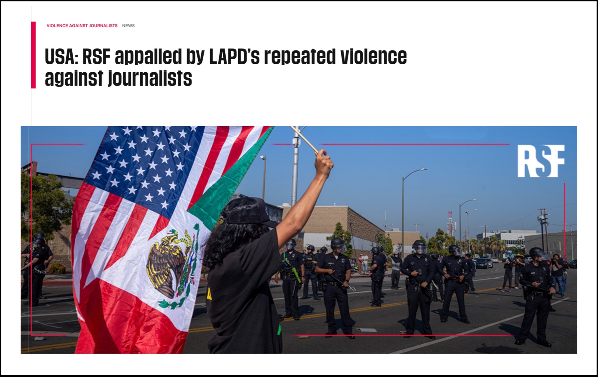 LA Times and Reporters Without Borders articles on LAPD attacks on journalists